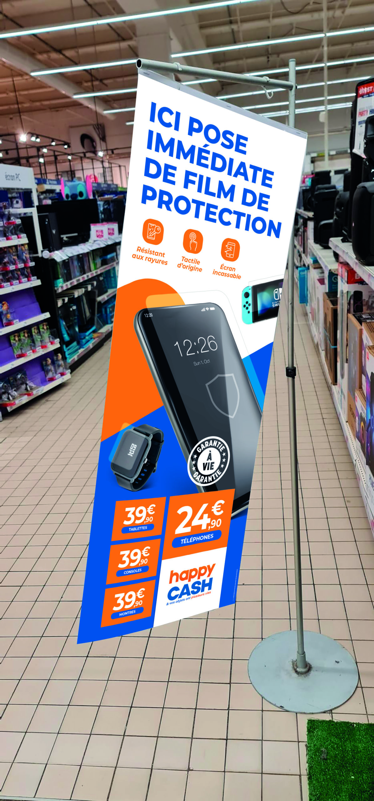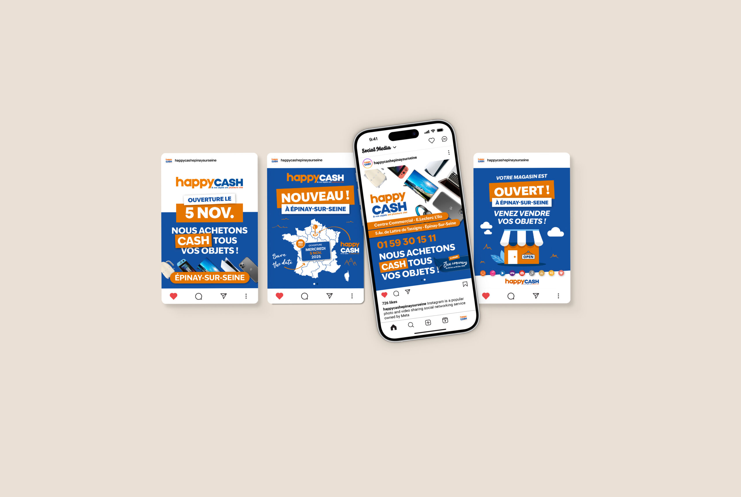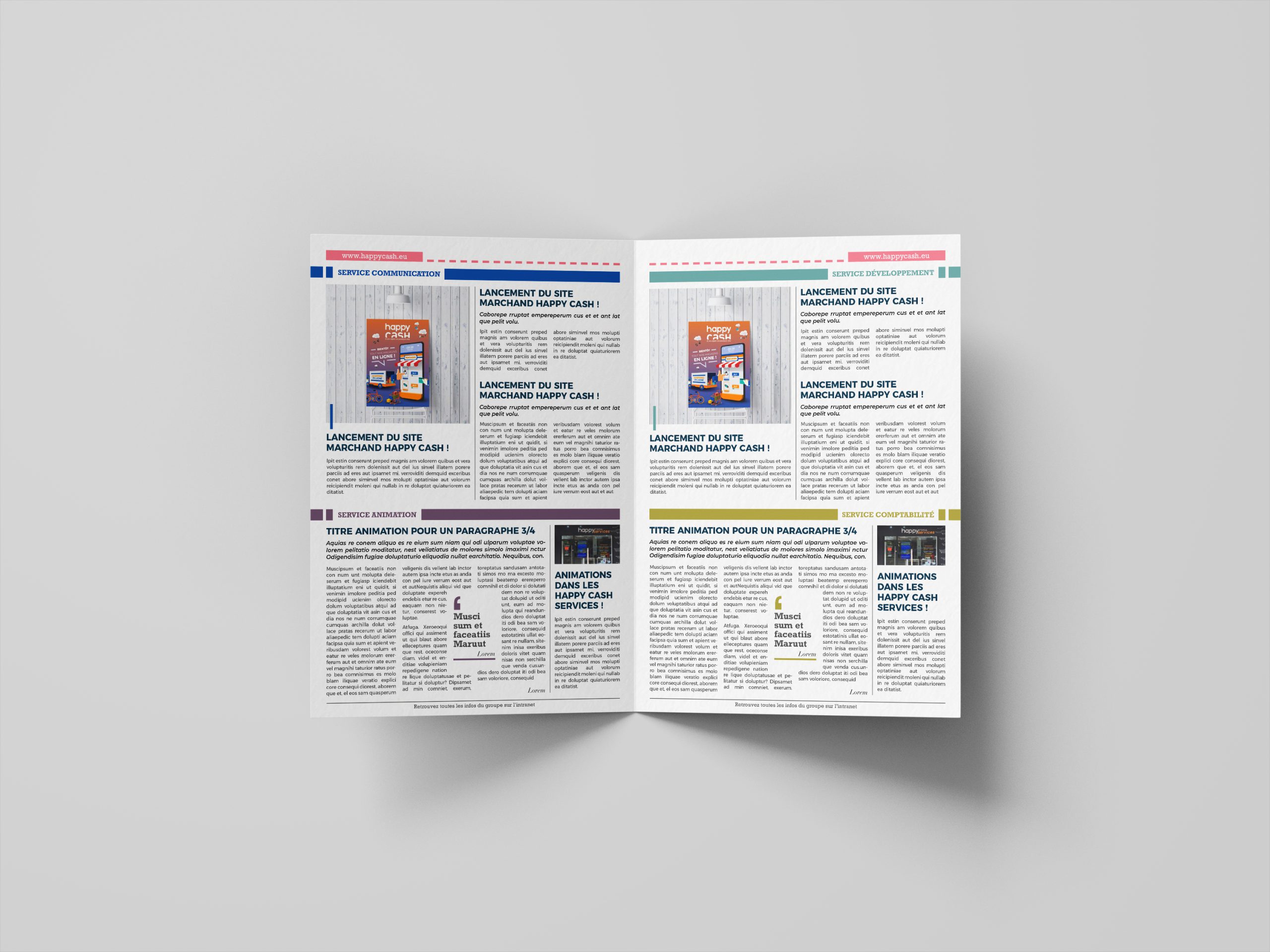 Client depuis 2018, nous travaillons en collaboration avec le siège : Happy Business pour tout le développement de la communication de ses enseignes. Happy Cash, Happy Troc, Happy Cash Services, Happy Cash Éco, Happy Repair, Happy Deal Online … Logotype, charte graphique, opérations de communication, affiches, flyers, ouverture de magasins, devantures, site internet etc.